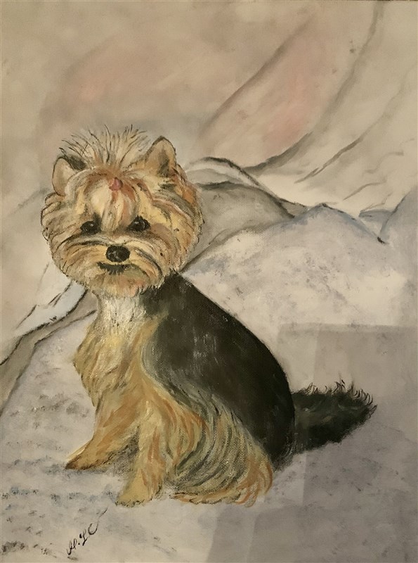 Zomilis Julie Andrrew målat i olja på duk mamma till de tre valparna du kan se på Instagram